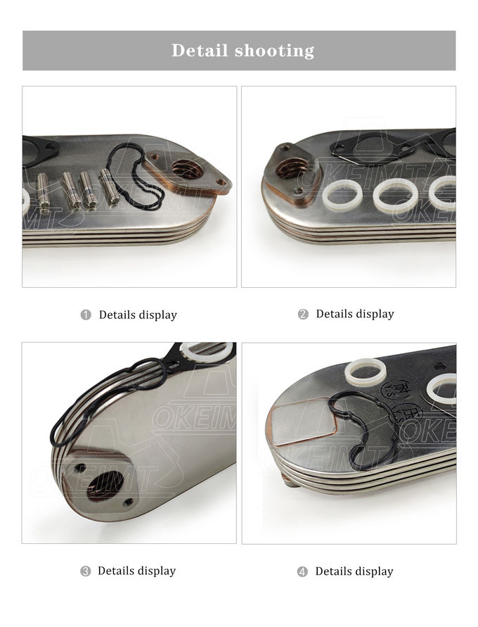 คูลเลอร์น้ำมันเครื่อง, ฝาครอบออยล์คูลเลอร์, กล่องเกียร์ไทม์มิ่ง, วาล์วแชมเบอร์คูลเลอร์, หัวกรองน้ำมัน, หัวกรองน้ำมันเชื้อเพลิง, เทอร์โมสตัทเครื่องยนต์, ปั๊มน้ำมันรถขุด, ซีลน้ำมันเครื่อง ฯลฯ